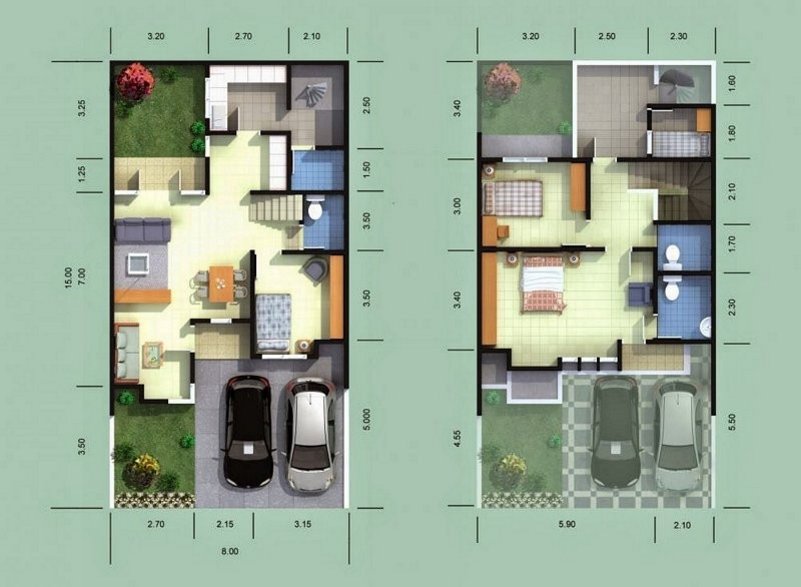 Desain Rumah Ukuran 8x15 2 Lantai Berbagai Ukuran