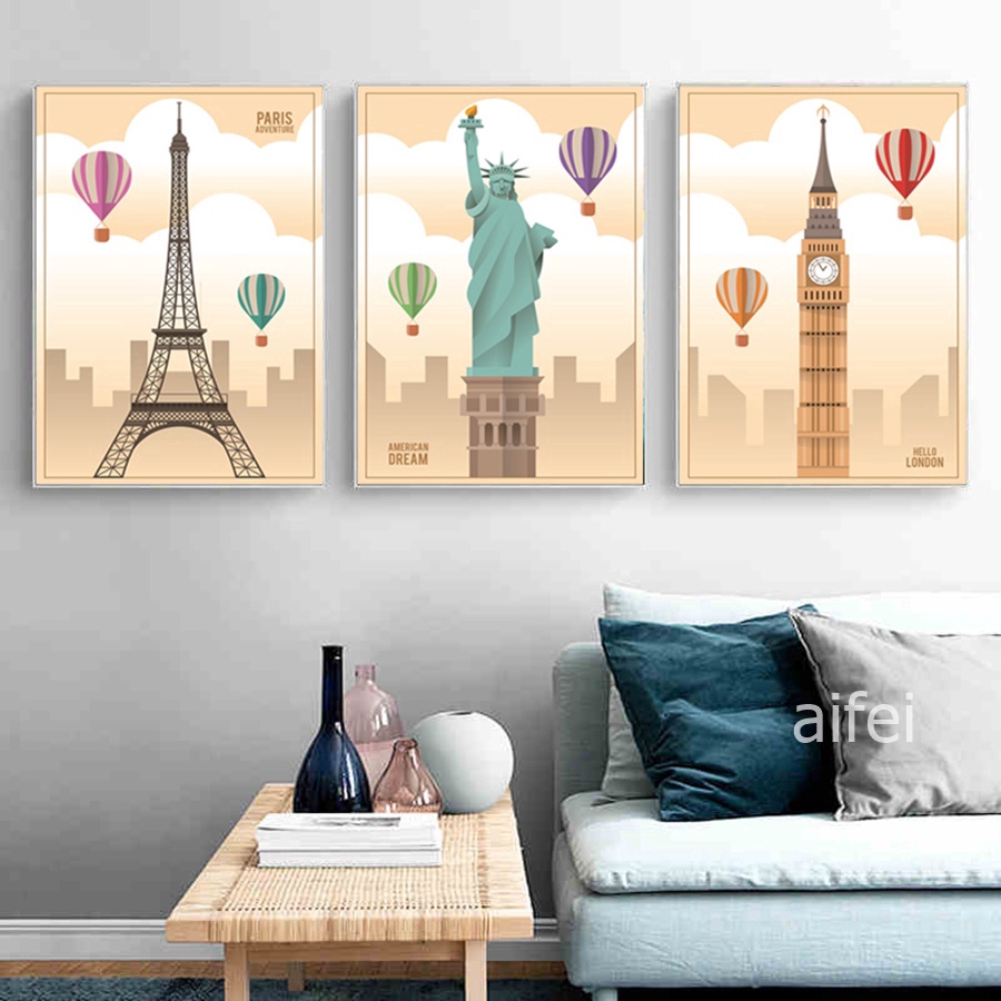 Lukisan Cat Minyak Desain Kartun Arsitektur Gaya Retro Untuk