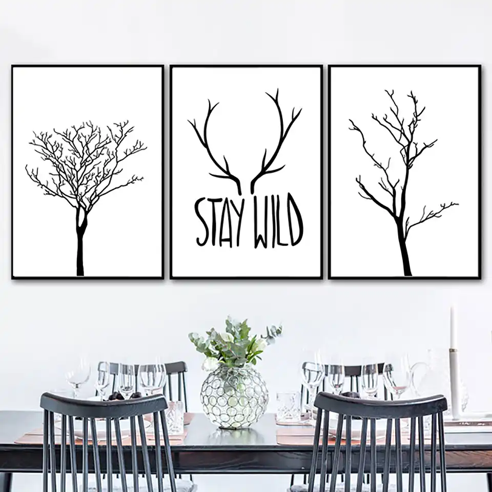 Cetakan Gambar Rumah Dinding Seni Nordic Gaya Modular Pohon Huruf