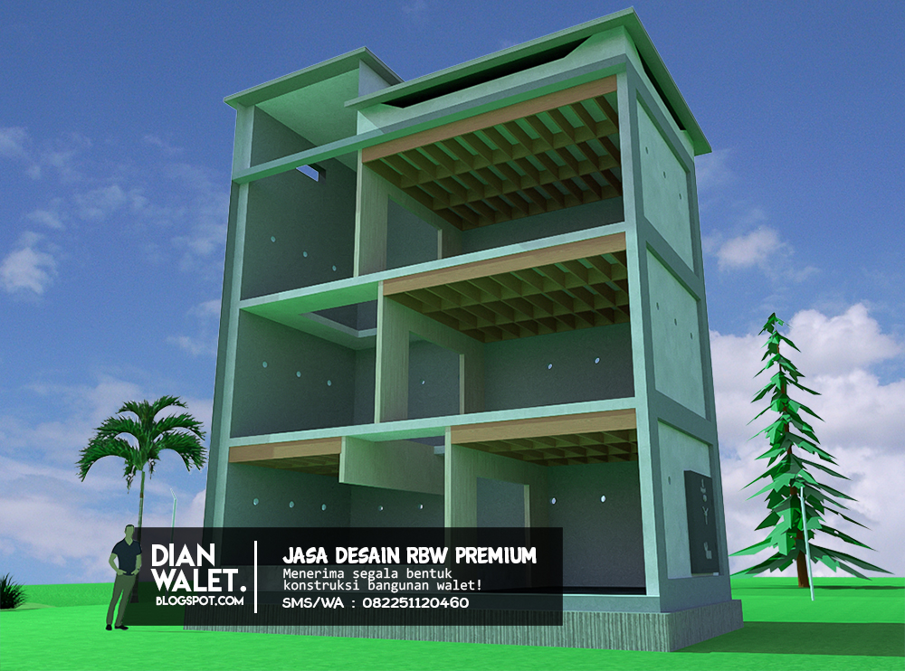 Desain Gedung Walet Rbw 4x8 3 Lantai Dinding Kayu Full Detail