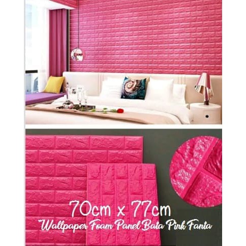 Warna Pink Matte Wallpaper 3d Modern Foam Batu Bata Ukuran 70 X 77
