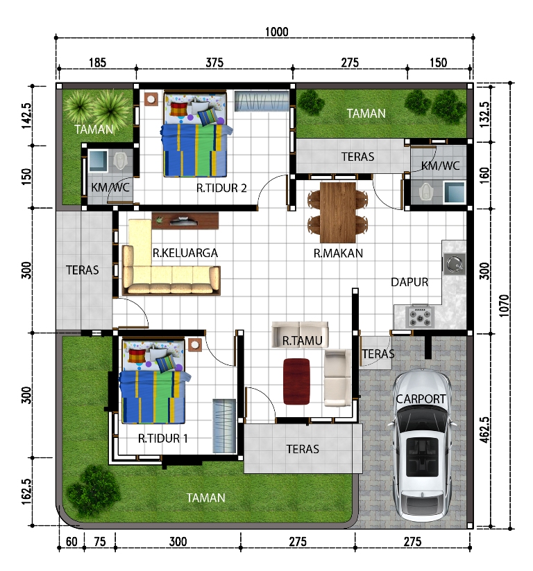Jasa Buat Gambar Denah 3d View Atas Perumahan Residence Desain