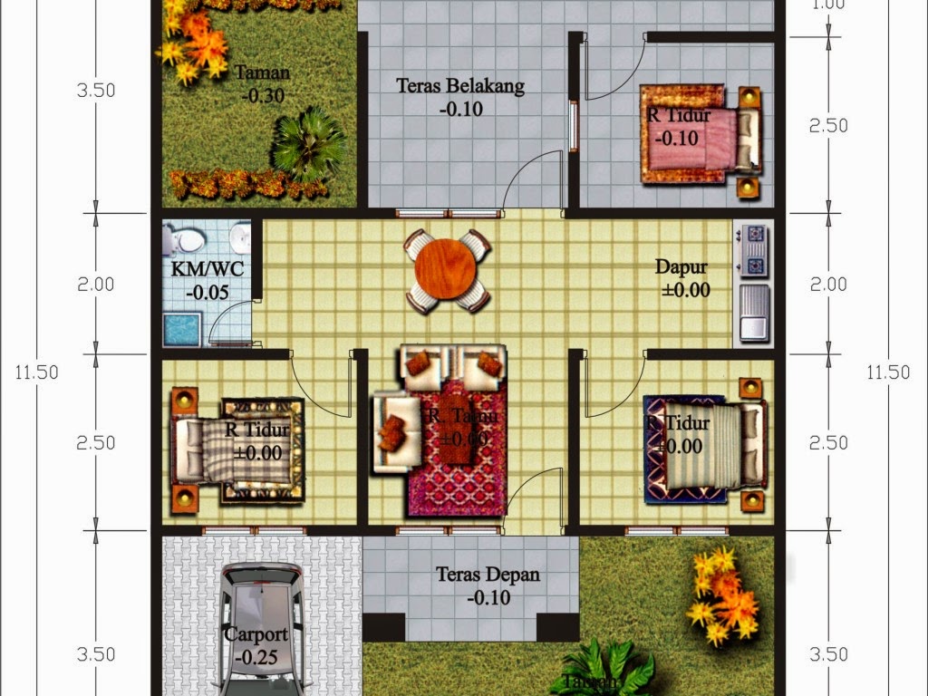 30 Denah Rumah Minimalis 3 Kamar Tidur 3d Tiga Dimensi Denah
